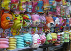 colorful paper lantern hanging here and there at nights. Many Shops are